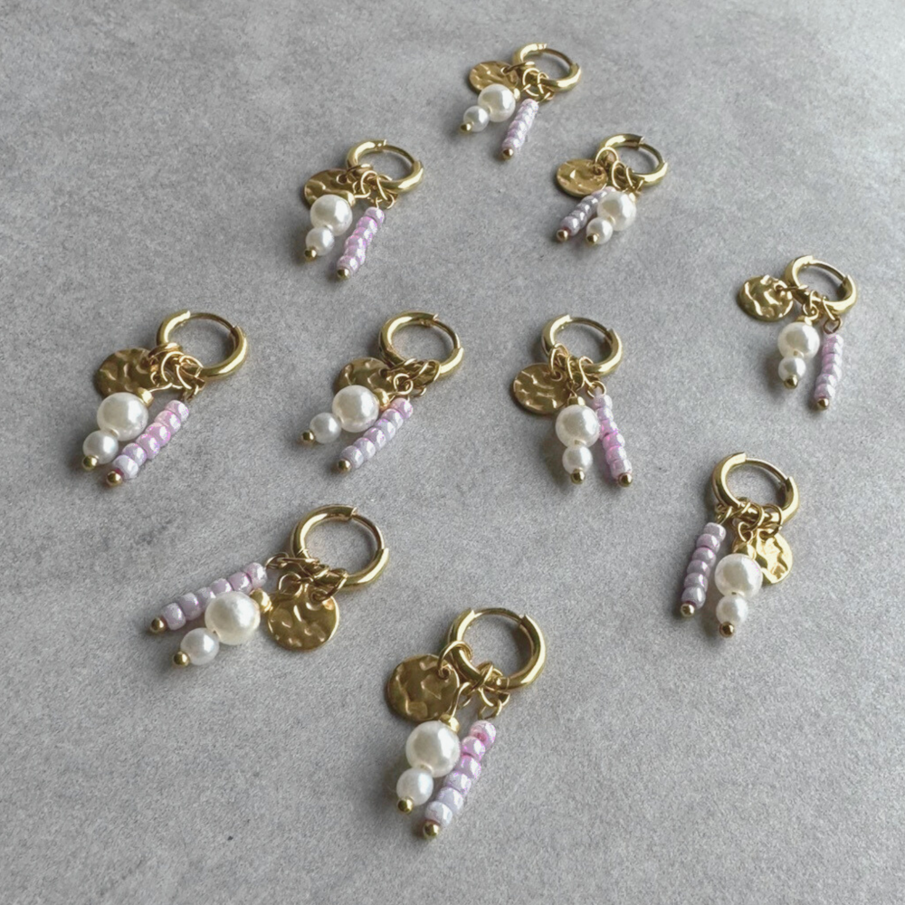 Deze goudkleurige stalen oorbellen Myrle zijn perfect als je houdt van subtiele kleur met een chique twist. De zachte lila kraal wordt gecombineerd met een goudkleurige ronde bedel, waardoor je een speels, vrouwelijk geheel krijgt dat net genoeg opvalt. Met een totale lengte van 3,2 cm zijn ze mooi verfijnd: lang genoeg om te schitteren, kort genoeg voor dagelijks draagcomfort.